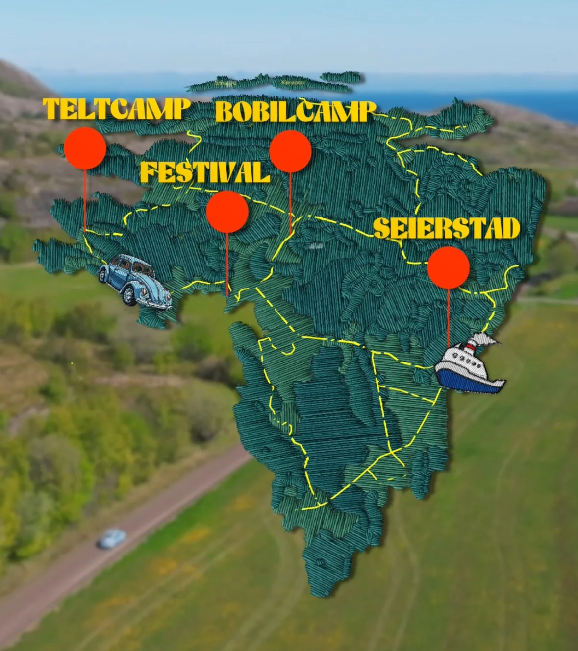 Beskrivelse: Kanskje Norges fineste festivalcamp. Du har en utsikt uten like, og vil mest sannsynlig oppleve både solnedgang og soloppgang under oppholdet. Her er det store arealer for å telte, og intet mindre enn 2-3 meter til sjøkanten. Det er tilgang til toalett på teltcampen, og man kan dusje på bobilcampen.